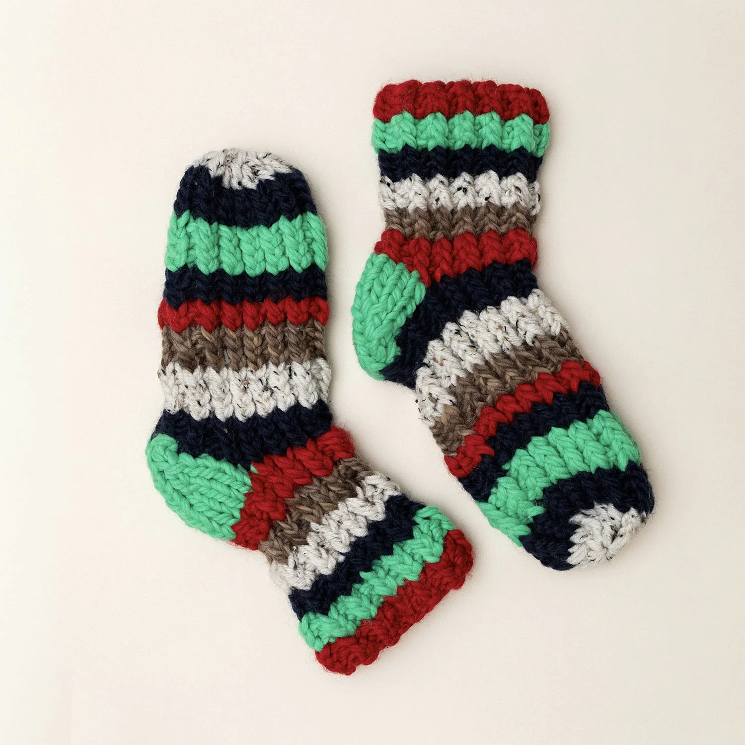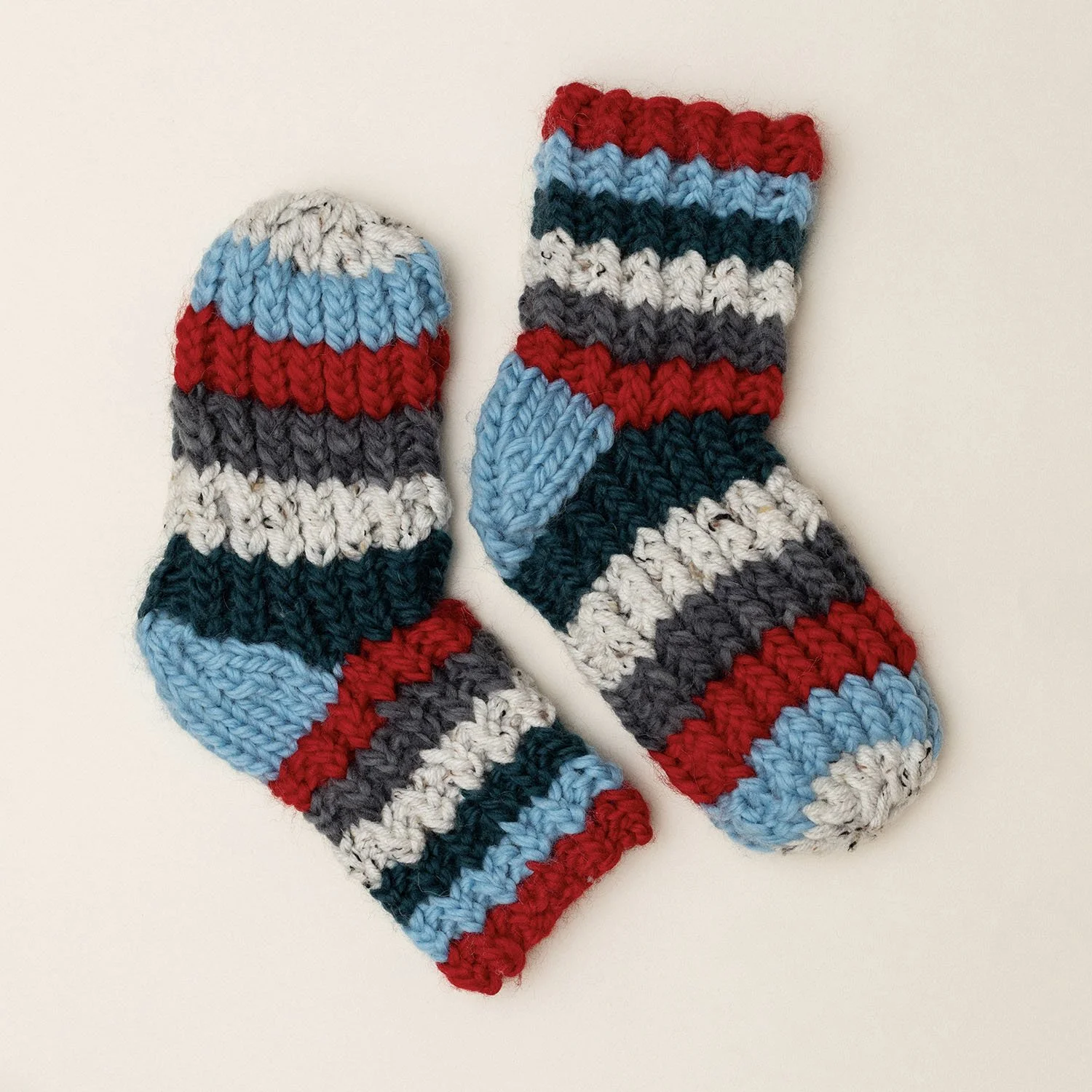 Wydziergane ręcznie z miękkiej i puszystej wełny — ciepłe, wygodne i przyjemnie otulające.